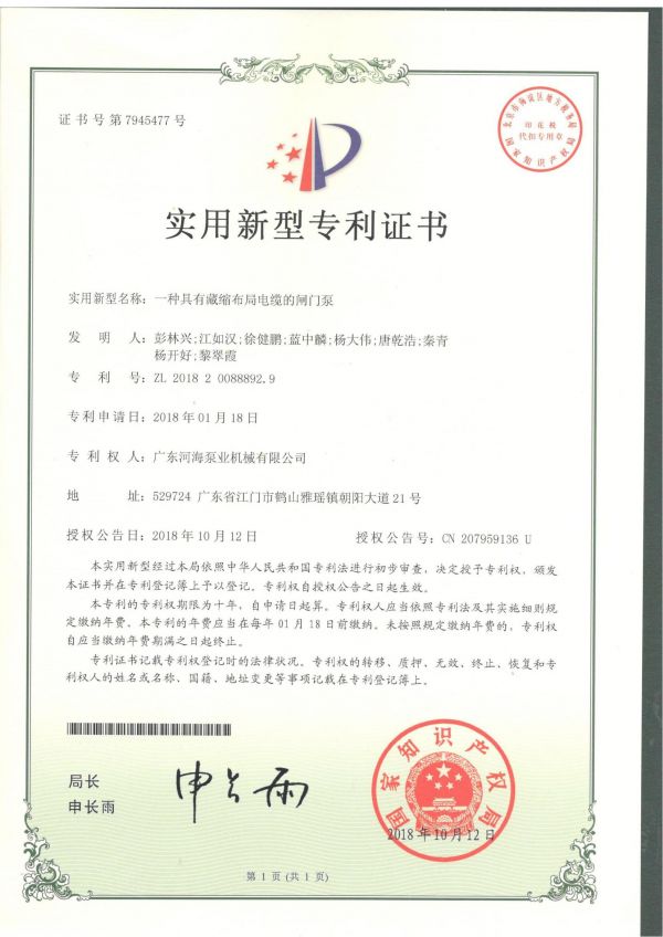 一種具有藏縮布局電纜的閘門泵