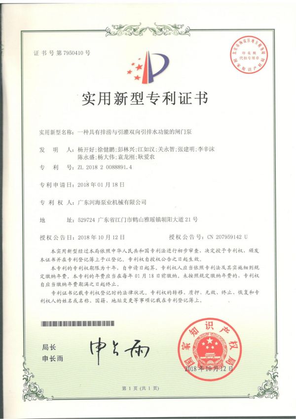 一種具有排澇與引灌雙向引排水功能的閘門泵